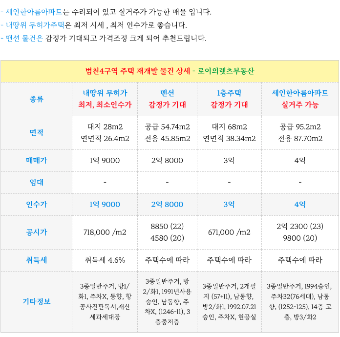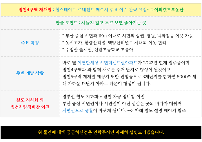 범천4구역 재개발 소액 매물 엄선하여 소개 해 드리겠습니다.
