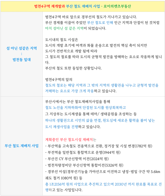 부산 철도 재배치의 전반 사업 부분에 대한 설명과