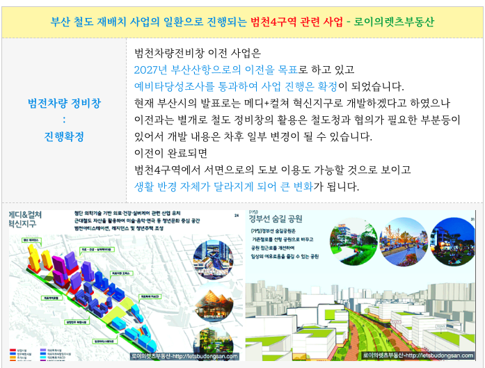 부산 철도 재배치 사업의 일환으로 진행되는 범천4구역 관련 사업 입니다.