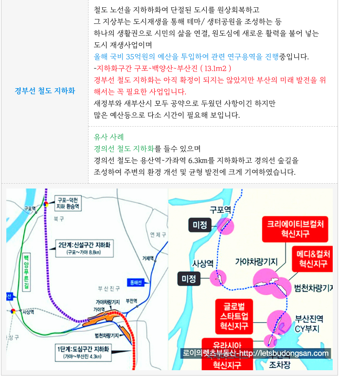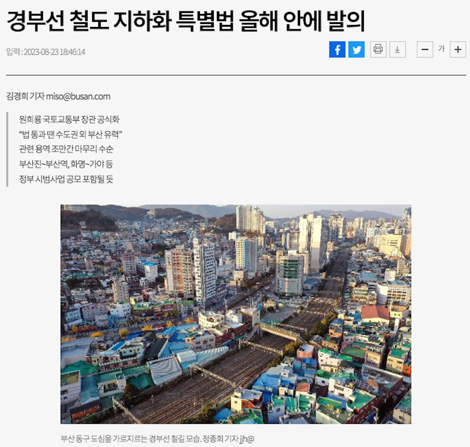 - 부산 경부선 철도 지하화는 부산시 중심 과제로 공약등으로 나왔지만 아직 확정 및 일정이 미정입니다.