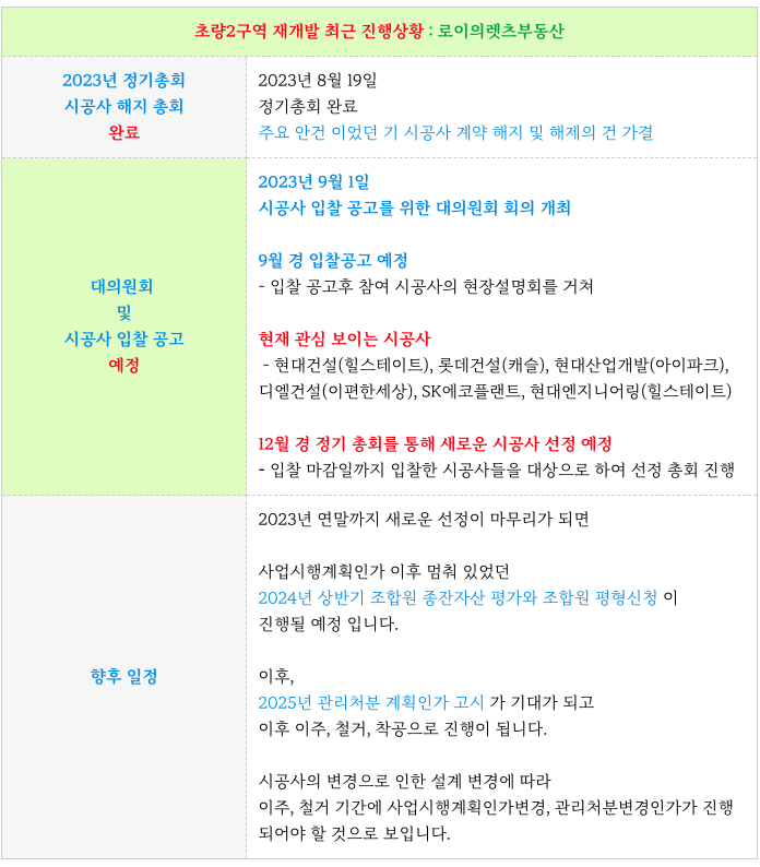 현장 설명회를 거쳐 연말까지 새로운 시공사 선정이 진행 될 것으로 예상이 되고 있습니다.