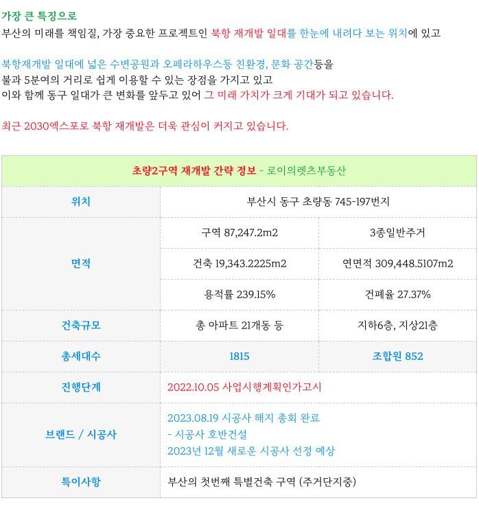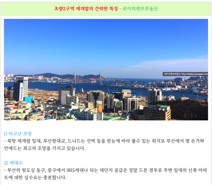 초량2구역 재개발의 특징을 다시한번 간략히 정리하였습니다.