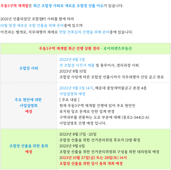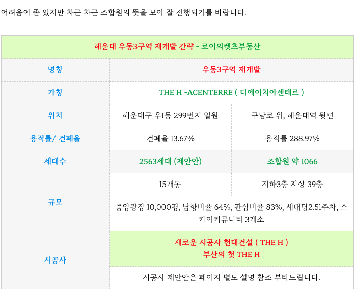 해운대 우동3구역 재개발의 현재까지 진행상황등 정리는 아래 페이지를 참고 부탁드립니다.