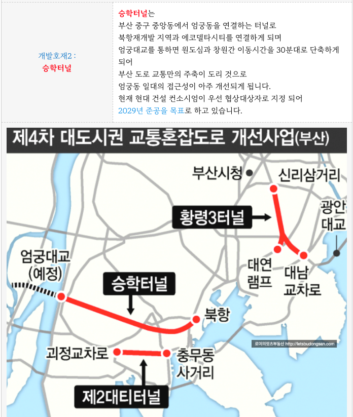 - 승학터널, 엄궁대교 : 부산원도심 접근 개선, 시외 접근 개선