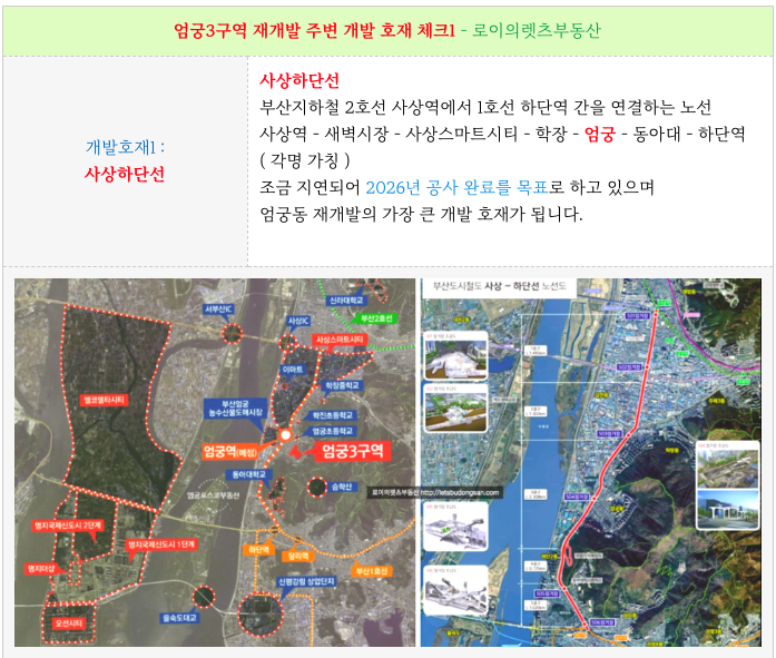 엄궁3구역 재개발의 사상하단선 도시철도호재 및 주요 개발 호재를 정리해 드리겠습니다.