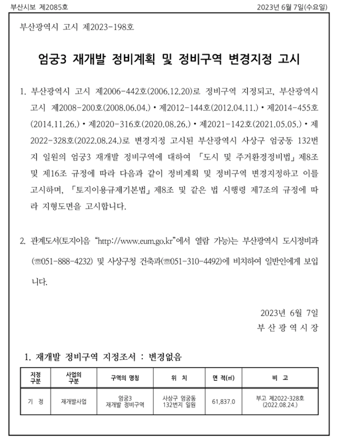 | 우동3구역 재개발 최근 소식 체크 & 현재 가능 최저 매물 (0) | 2023.09.07 |