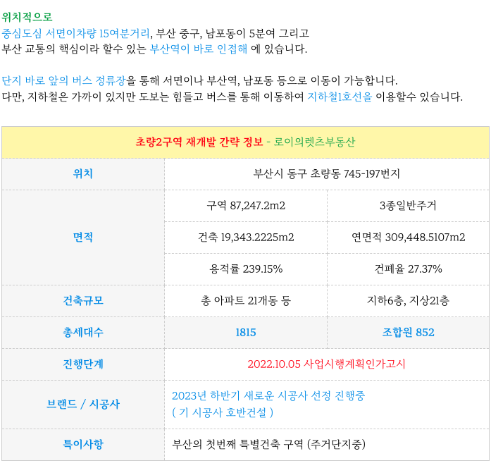 초량2구역 재개발의 주요 특징을 간략히 정리하였습니다.