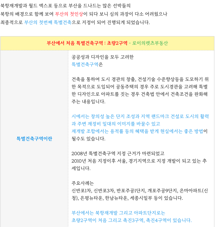 초량2구역 재개발 은 주거단지로 부산의 첫 특별건축구역 입니다.