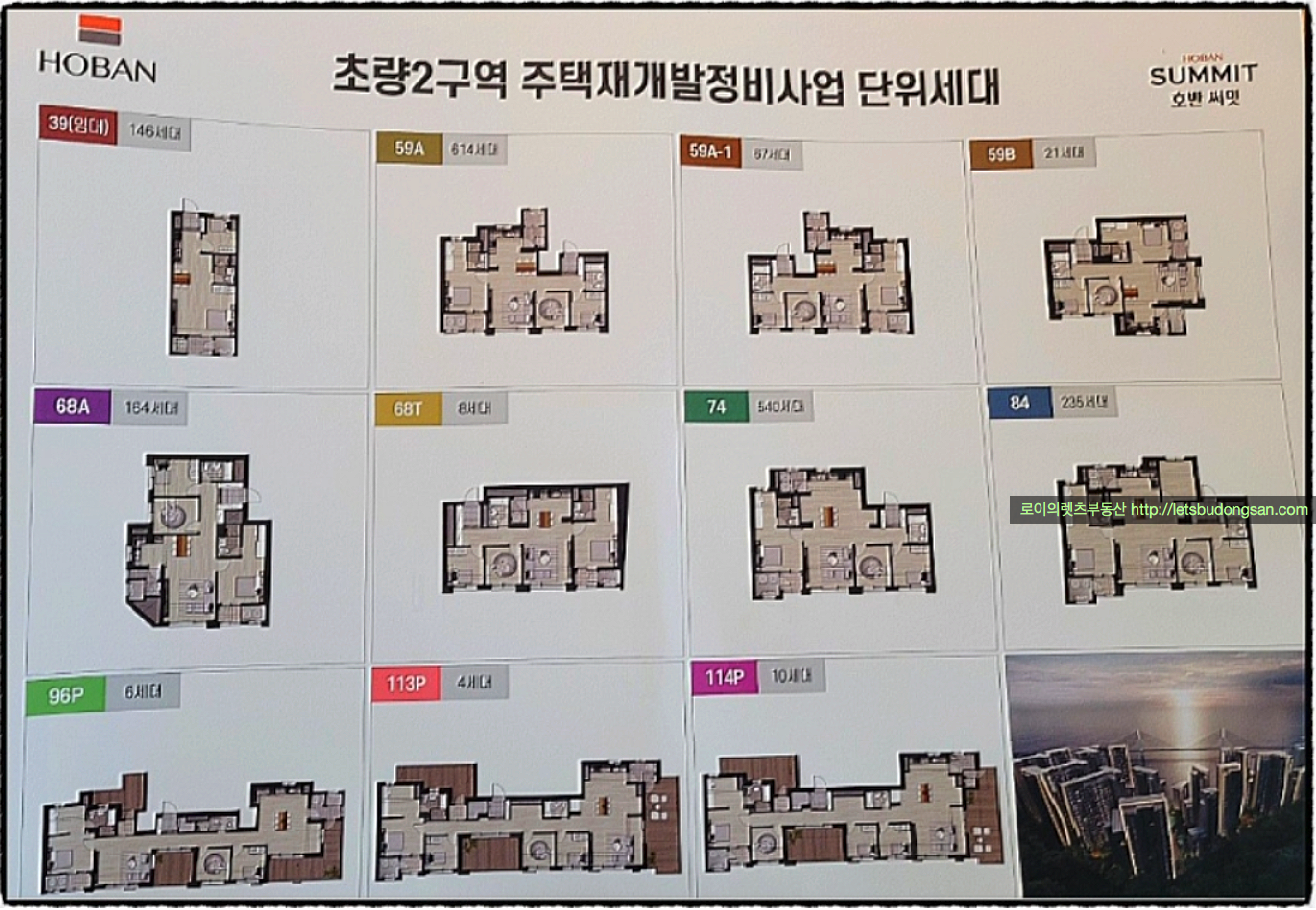 초량2구역 재개발의 현 타입별 세대수 입니다.