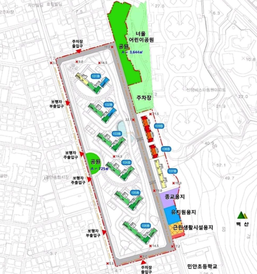 민안초등학교를 바로 곁에 품고 있는 초품아로 장정을 가지고 있습니다.