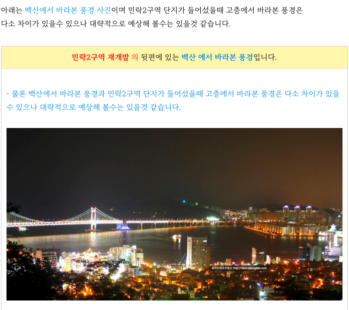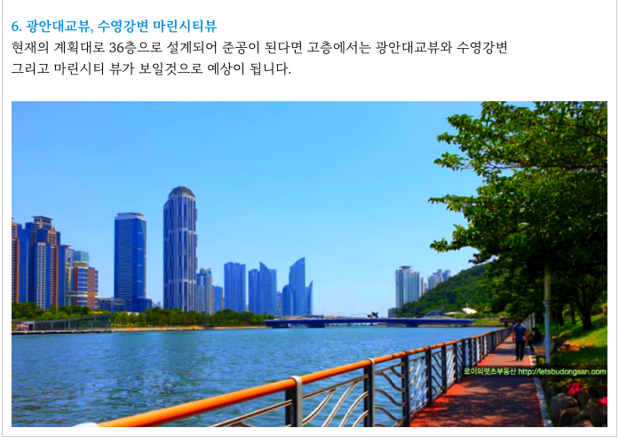 고층에서 보면 광안대교가 조망이 될 것으로 예상이 되는데 아래 부분도 참조 해보시면 좋습니다.