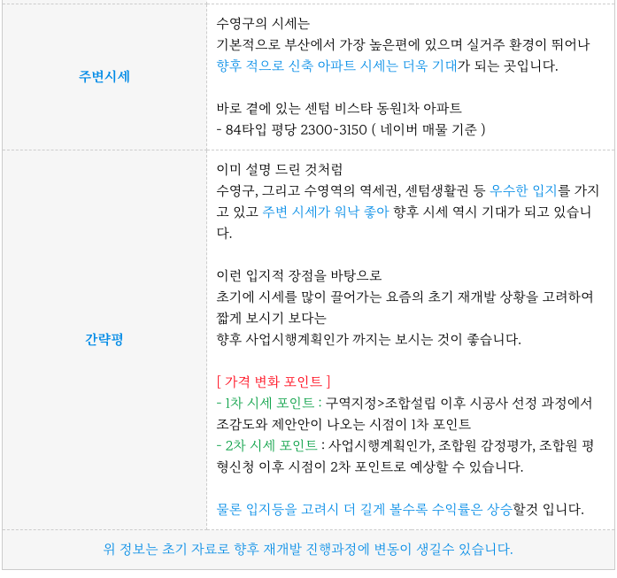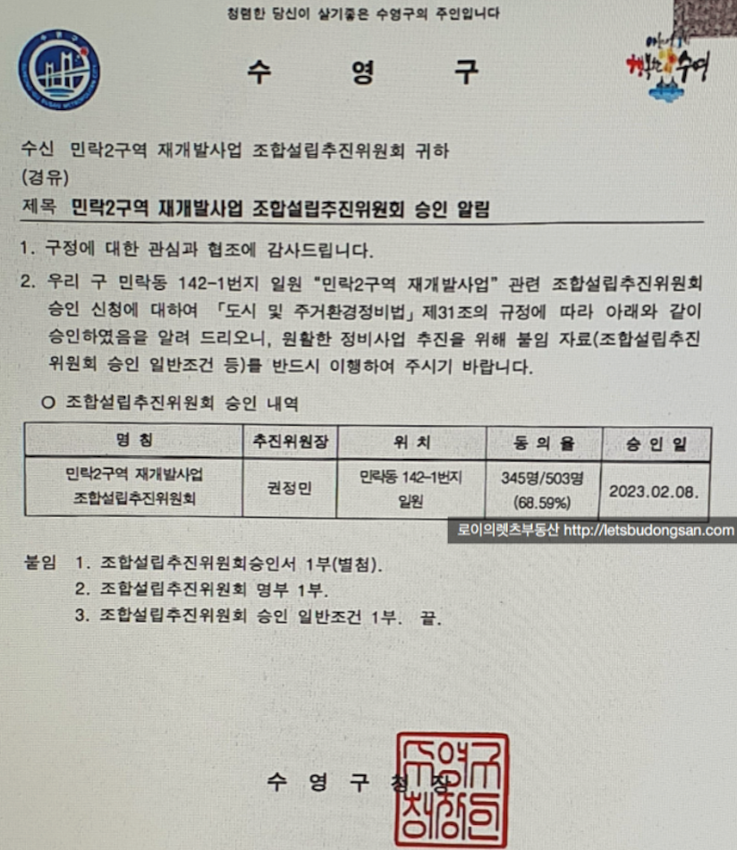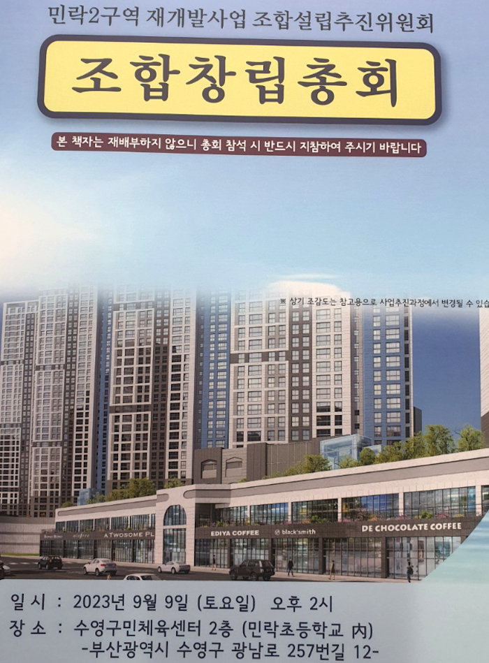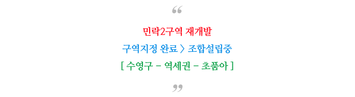 (09/09) 수영구 민락2구역 재개발 시세 최저 매물 & 조합창립총회