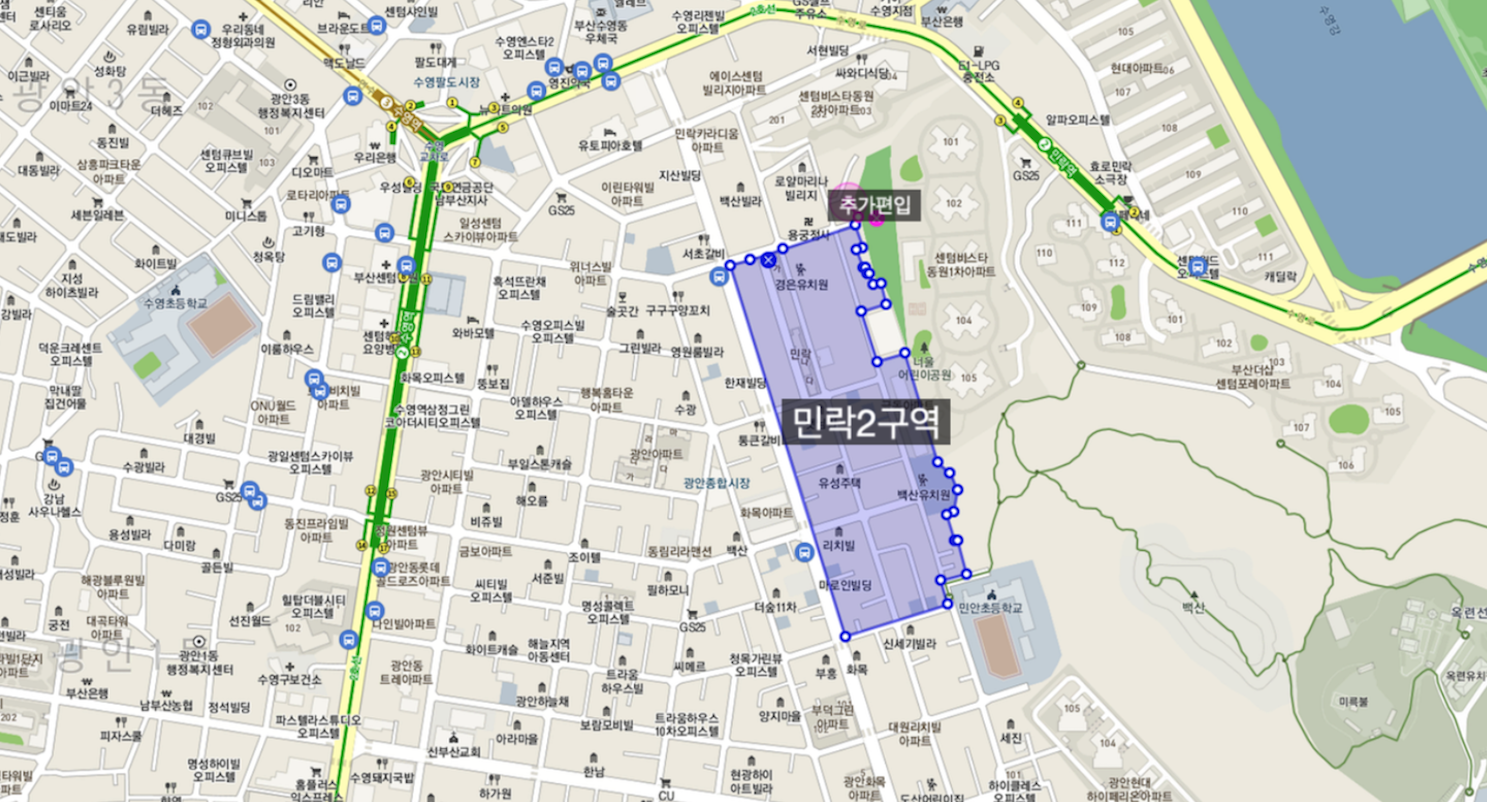 광안4구역 예정지 (구역지정신청)와 함께 약 2000여세대의 새로운 신축 아파트 주거단지가