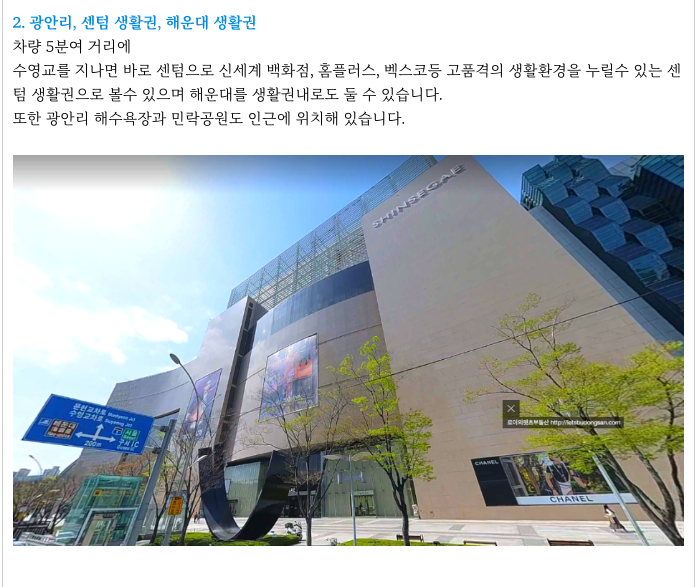 신세계백점, 롯데백화점등 좋은 해운대 상권을 편하게 이용가능한 센텀 생활권으로도 불릴수 있으며