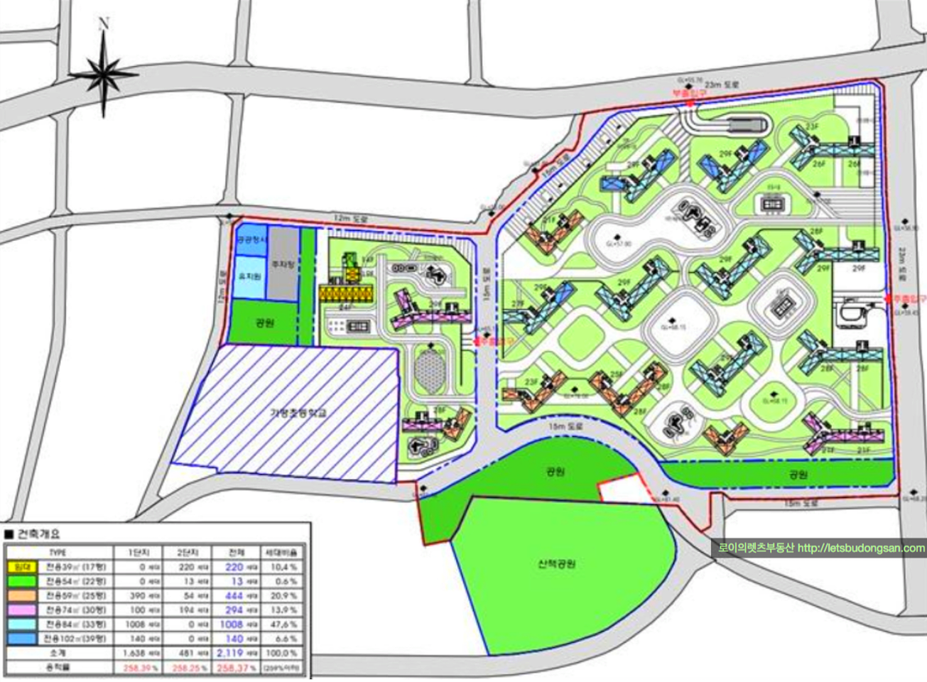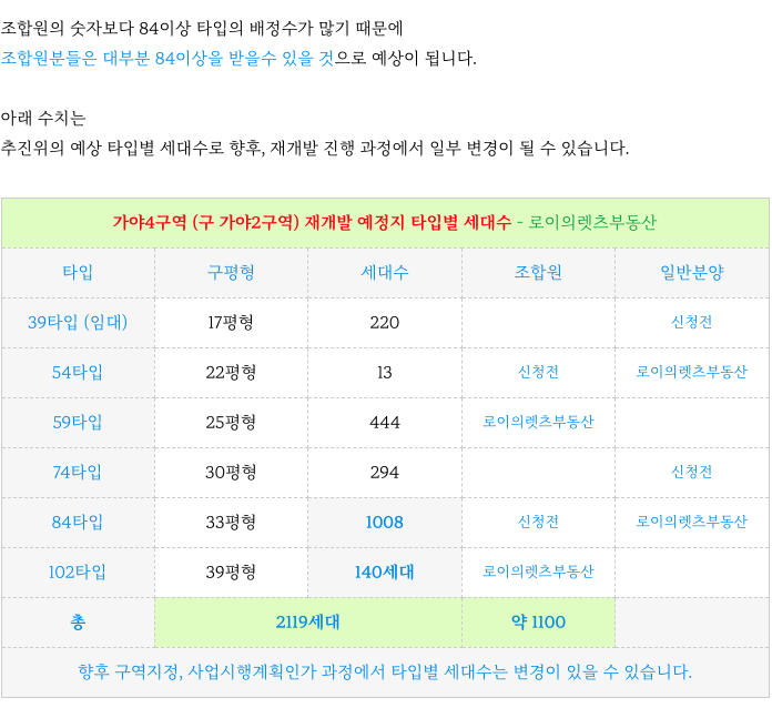 가야4구역 재개발 예정지의 추진위의 예상 타입별 세대수 입니다.