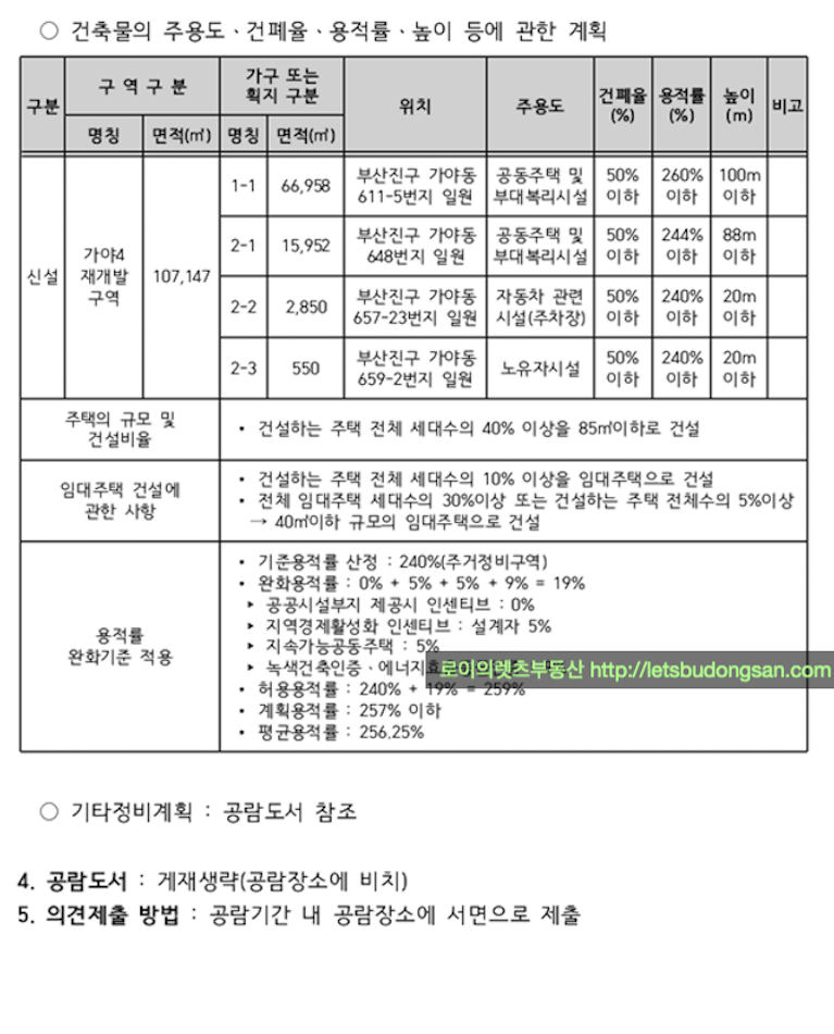 가야4구역 재개발 예정지의 간략한 특징들을 정리해 드리겠습니다.