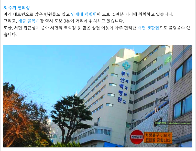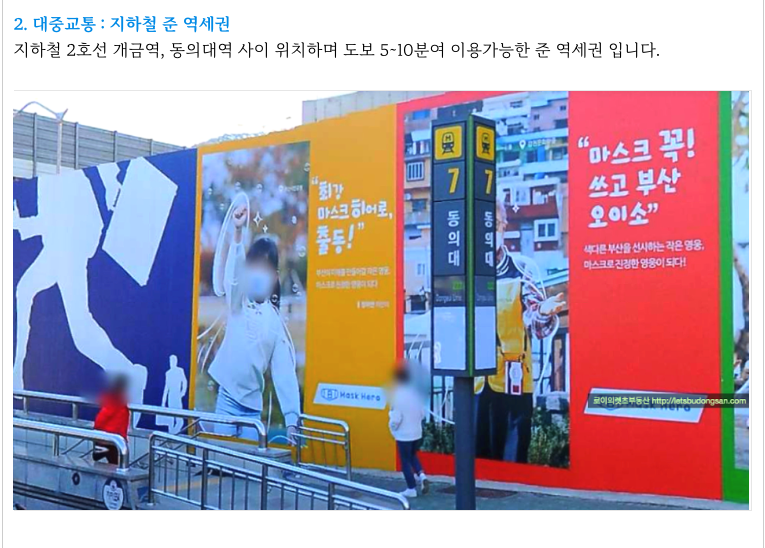 서면이 불과 5분여 거리로 서면의 백화점과 많은 우수 상권등을 이용하기가 편리합니다.
