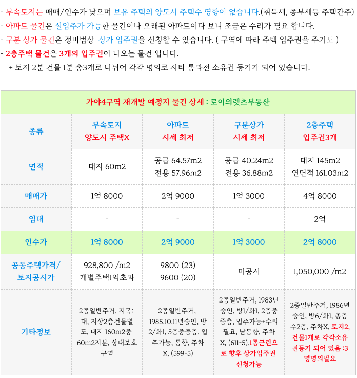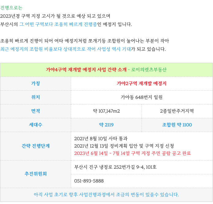 구역지정 가까운 - 가야4구역 재개발 현 매물 정보
