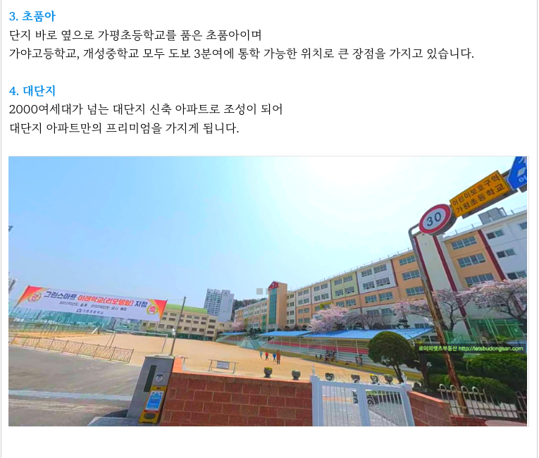 가평초등학교를 품고 있는 초품아로서의 실거주적 장점과