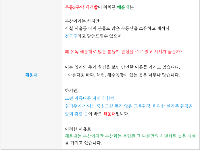 해운대 우동3구역 재개발의 현재까지 진행상황 정리등 추가 정보는 아래 페이지를 참고 부탁드립니다.