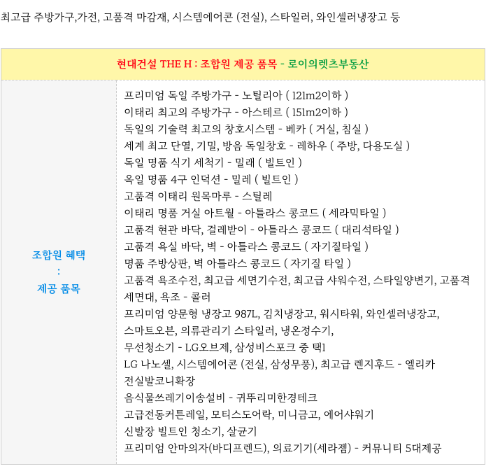 3) 현대건설 THE H : 조합원 제공 품목