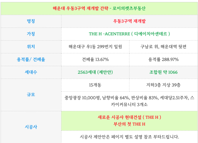 전체 2563세대의 해운대에서의 마지막 대단지로 건설이 될 예정으로