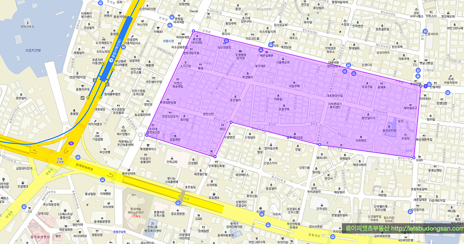 동래구 충렬사역의 역세권에 위치하고 있는 안락1구역 재개발은