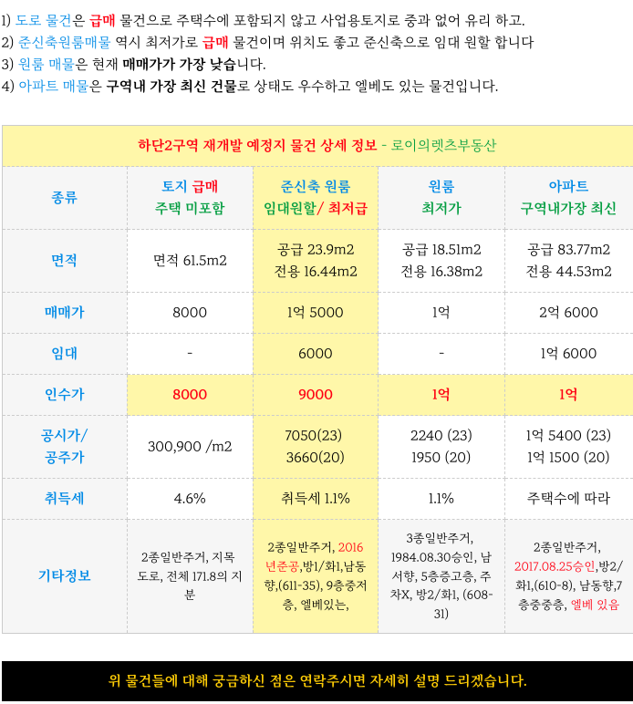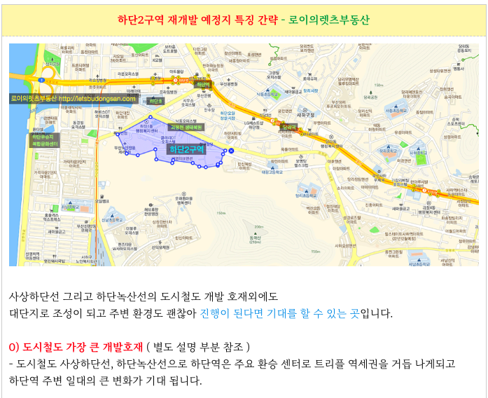 하단2구역 재개발 예정지 토지 / 원룸 / 아파트 등 최저 매물 정보를 소개 하여 드리겠습니다.