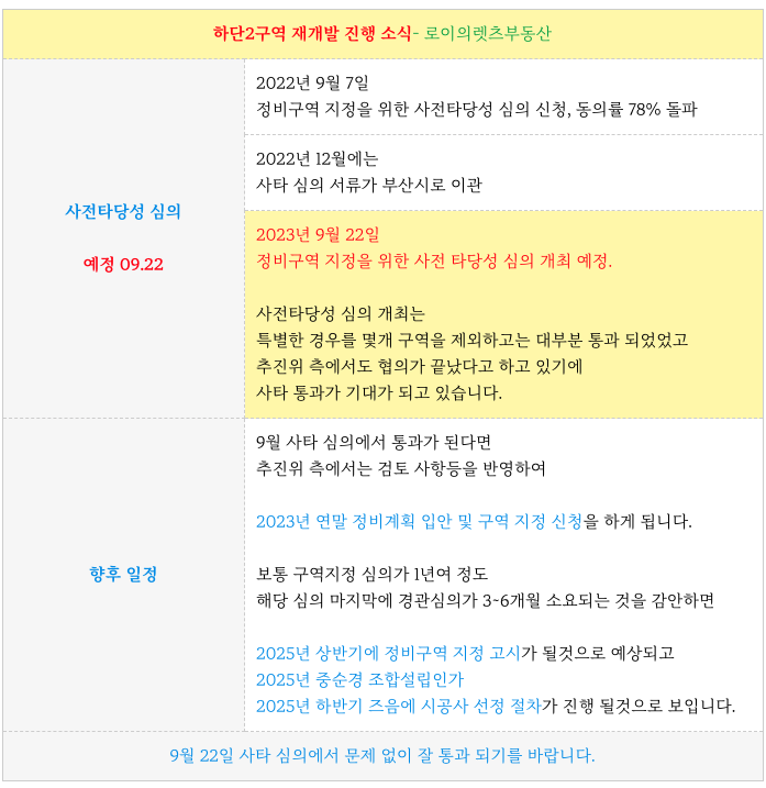 하단2구역 재개발은 이제 다음주면 사전타당성 심의가 진행될 예정입니다.
