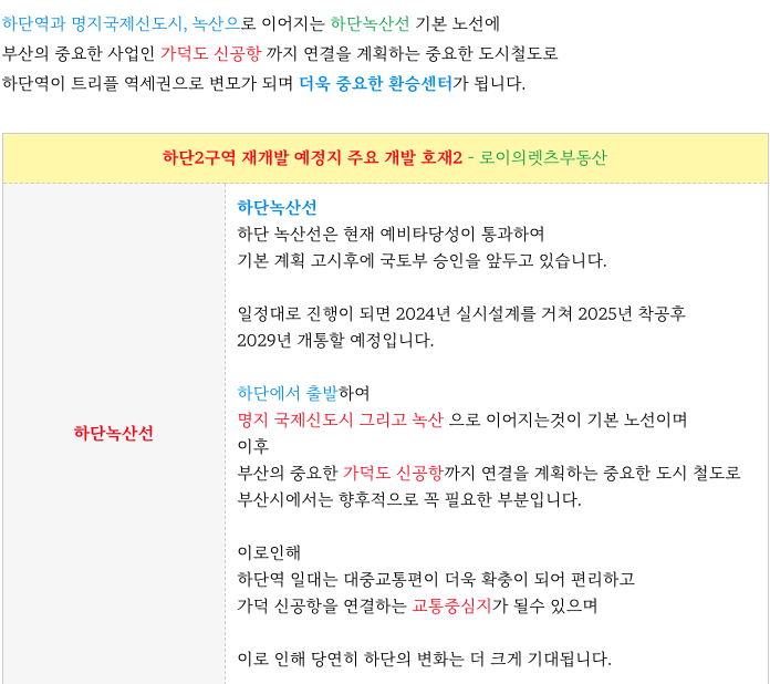 안녕하세요. 로이의렛츠부동산 ( 제이에이케이 부산 부동산중개법인 ) 입니다. 오늘은 개발호재 많은 하단2...