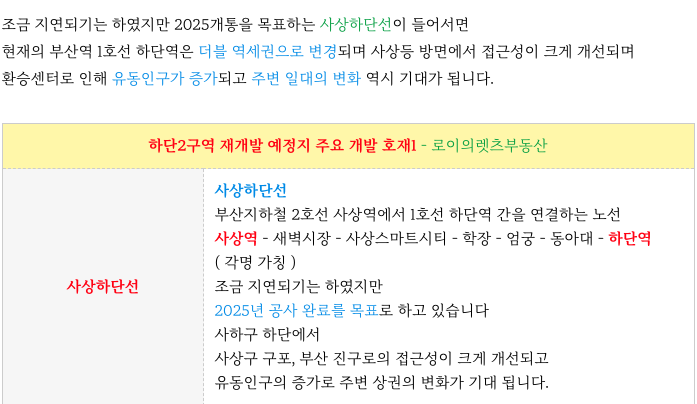 도시철도 개발 호재로 사상하단선과 하단녹산선이 있습니다.