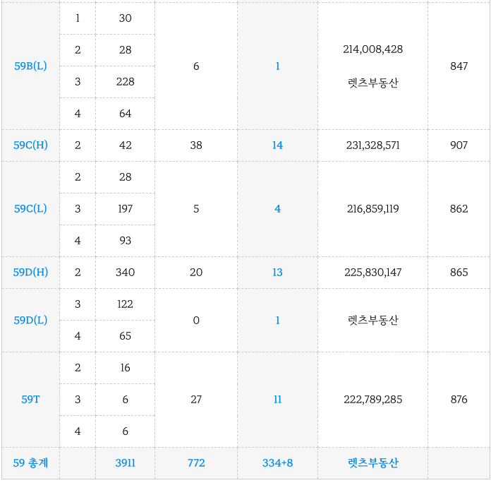 아래 물건들은 타입별 최저 물건들만 엄선하였습니다