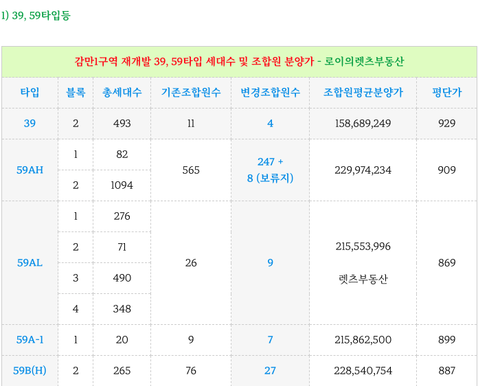감만1구역 재개발 타입별 최저 입주권 매물들을 소개해 드리겠습니다.