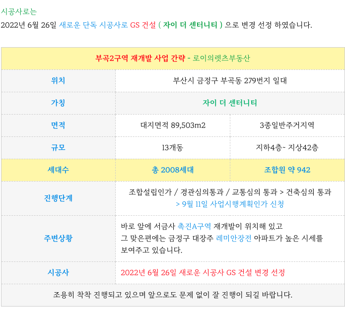 부곡2구역 재개발 ( 자이 더 센터니티 ) 의 특징을 다시 한번 정리 드립니다.