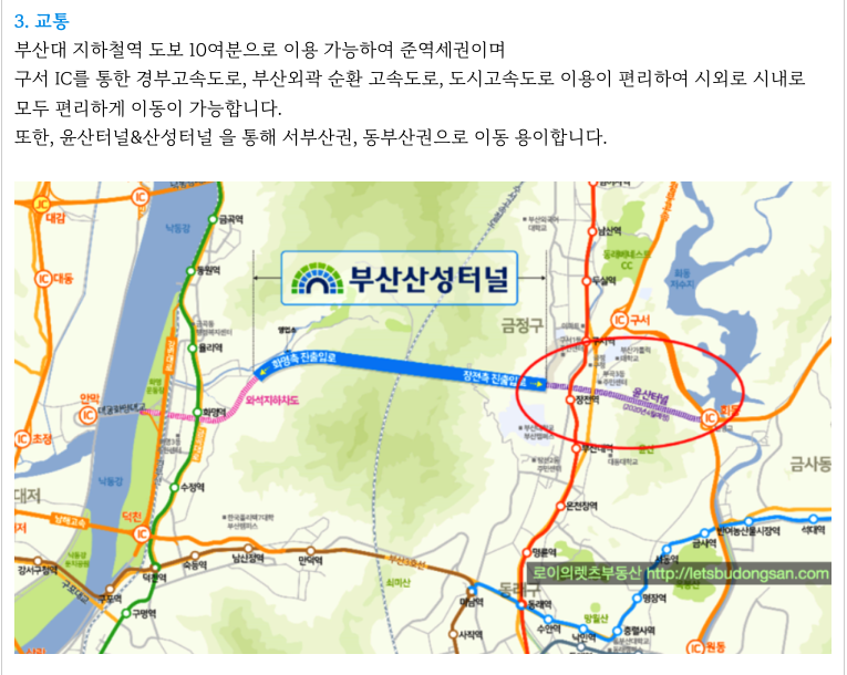 - 대단지 브랜드 아파트, 산성터널, 윤산터널, 경부선