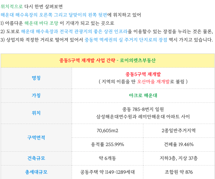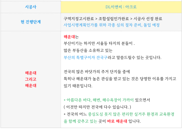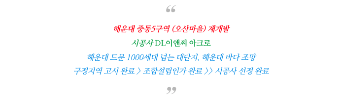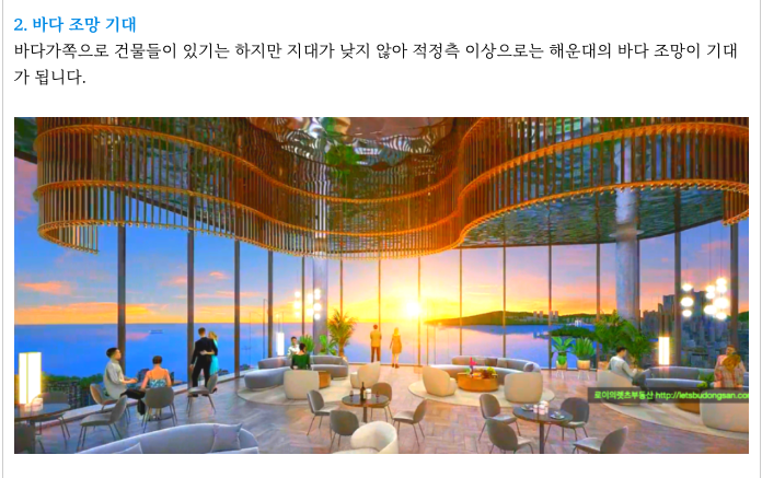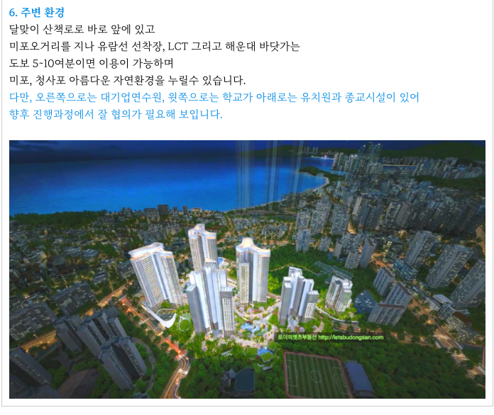 조합원의 다소 비율이 높은 것이 단점이기도 하지만 해운대라는 특성상 주변 시세가 워낙 좋아