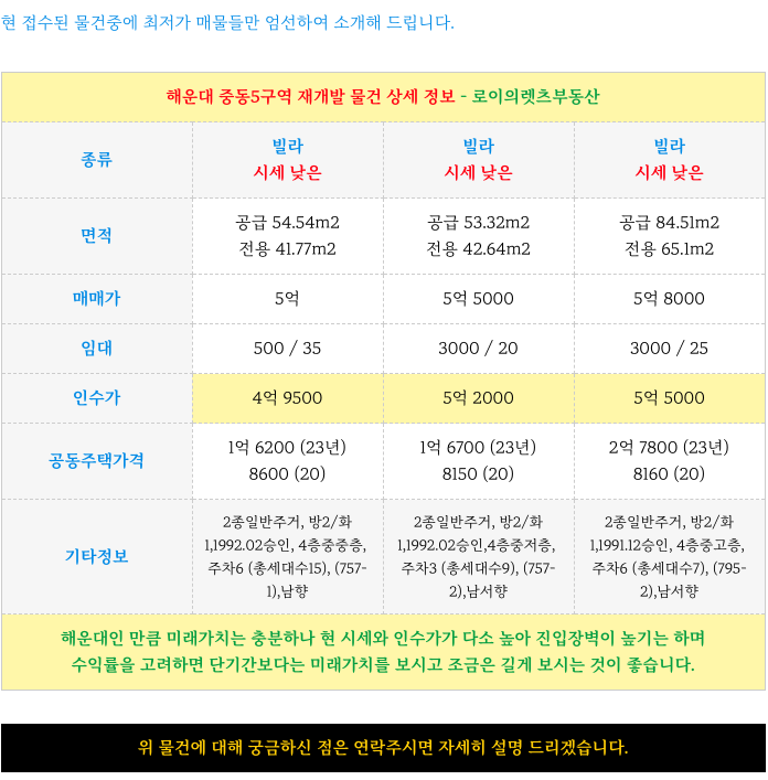해운대 중동5구역 재개발 최저 빌라 매물 & 진행 일정 소개해 드리겠습니다.