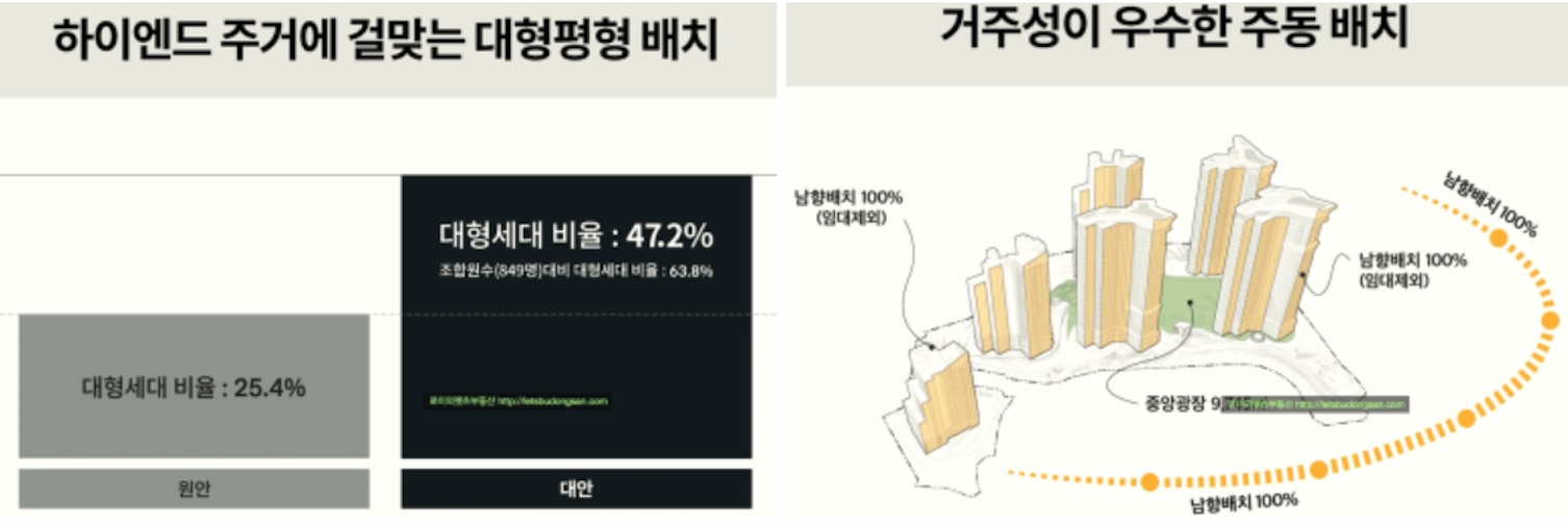 시공사 선정 고시시 예상 세대수가 다소 감소하였고 해당 기준을 바탕으로 시공사에서 제안되었습니다.