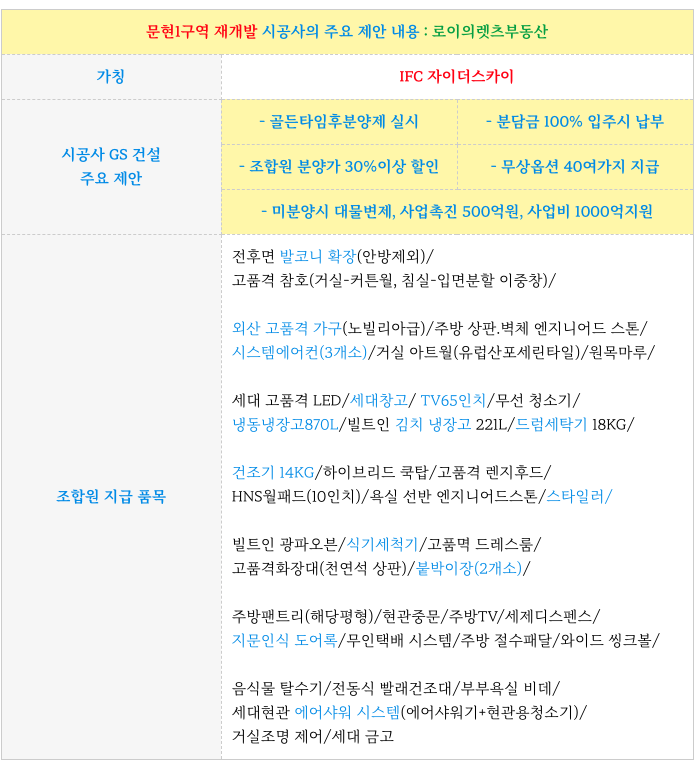 문현1구역 재개발 시공사의 주요 제안 부분 입니다.