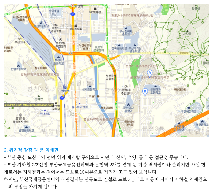 중심부와 상단은 부산 금융센터단지역에서 직선거리는 300여미터밖에 되지 않지만