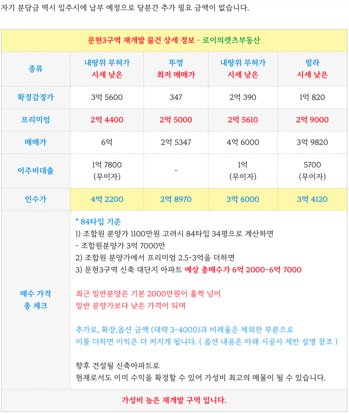 문현3구역 재개발 프리미엄 낮은 매물들 새롭게 업데이트 하여 소개해 드리겠습니다.