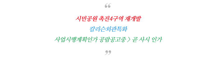 사시 임박 시민공원 재정비 촉진4구역 재개발 현 진행 소식과 소액 매물