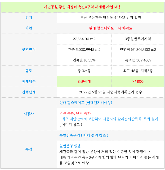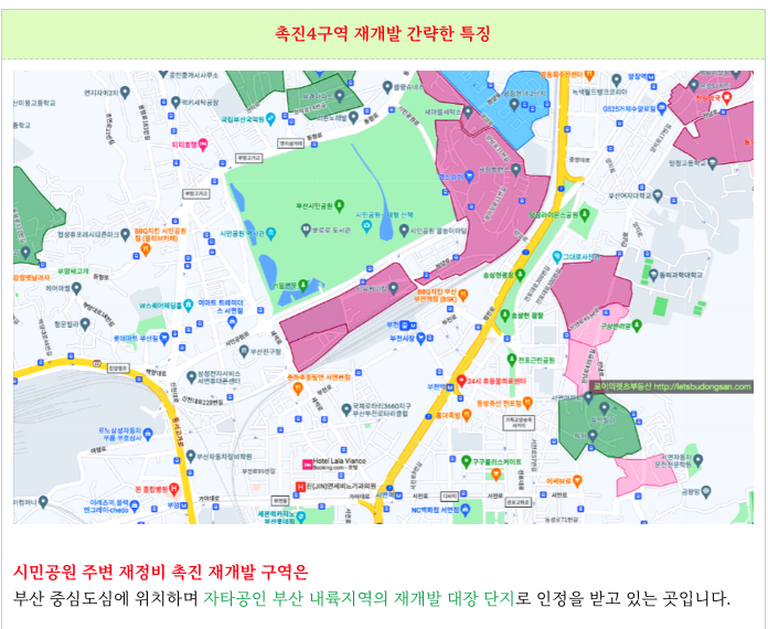 시민공원 주변 재개발의 특징 을 다시 한번 간략히 정리해 드립니다.