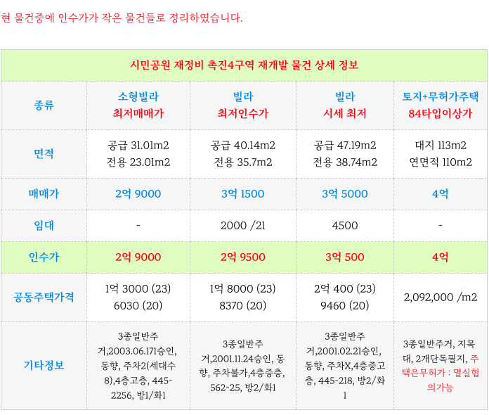 시민공원 촉진4구역 재개발 현재 추천 드릴수 있는 소액 물건 소개해 드리겠습니다.