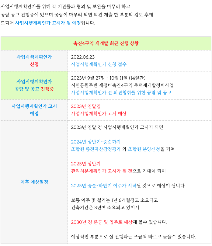시민공원 촉진4구역 재개발의 현재까지의 진행 상황을 정리등 추가 정보는 아래 페이지를 참고 부탁드립니다.