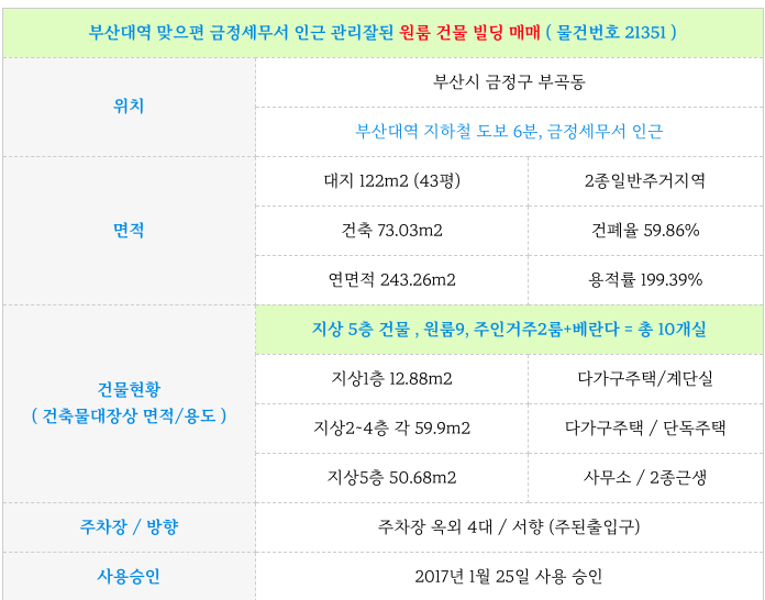 부산대역 역세권 2017년 준신축 원룸 통 건물 빌딩 매매 물건 정보 정리 드립니다.