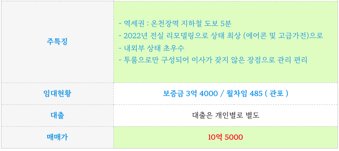 - 역세권 : 온천장역 지하철 도보 6분