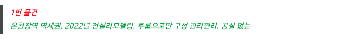 그럼, 오늘 3개 물건 정보 바로 소개하여 드리겠습니다.