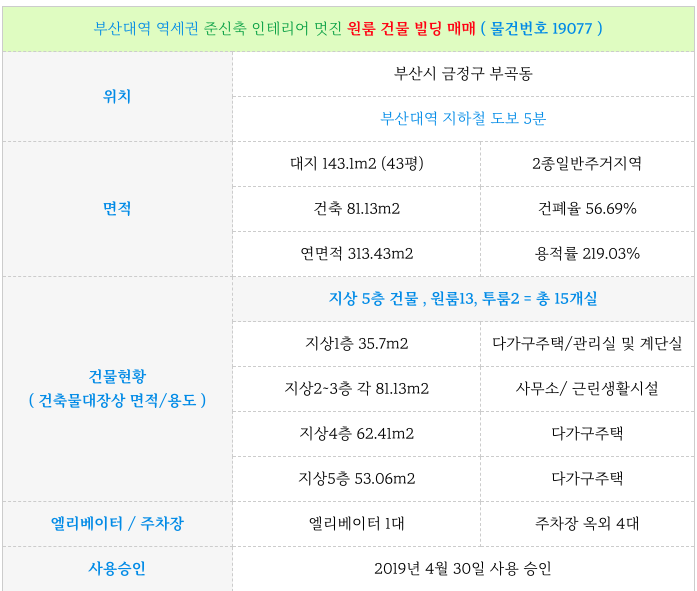 - 2019년 승인 받은 준 신축건물 : 깔금