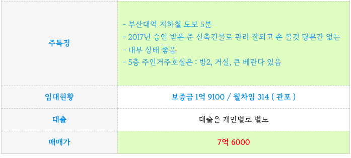 금정구의 역세권이 공실없이 운영되고 있으며 연식이 오래 되지 않거나 리모델링 되어
